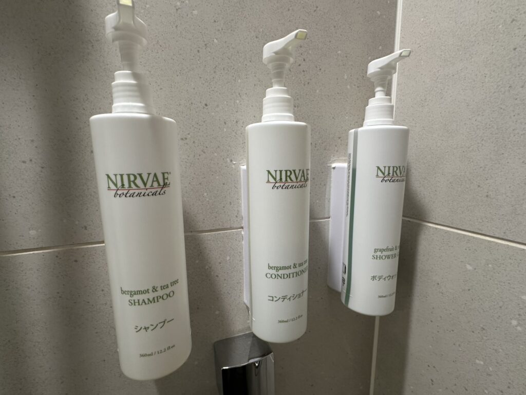 高級感からは少し程遠いプラスチック製のシャンプーたち!