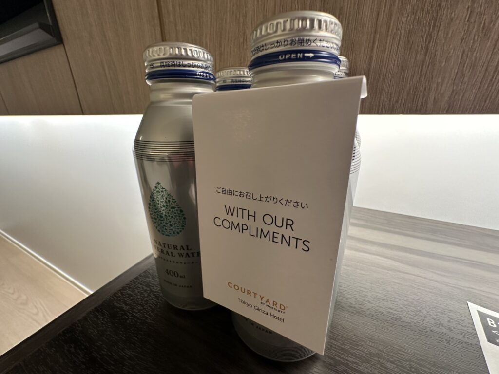 お水は四本も準備されていました!缶に入っていたので高級感を感じます!