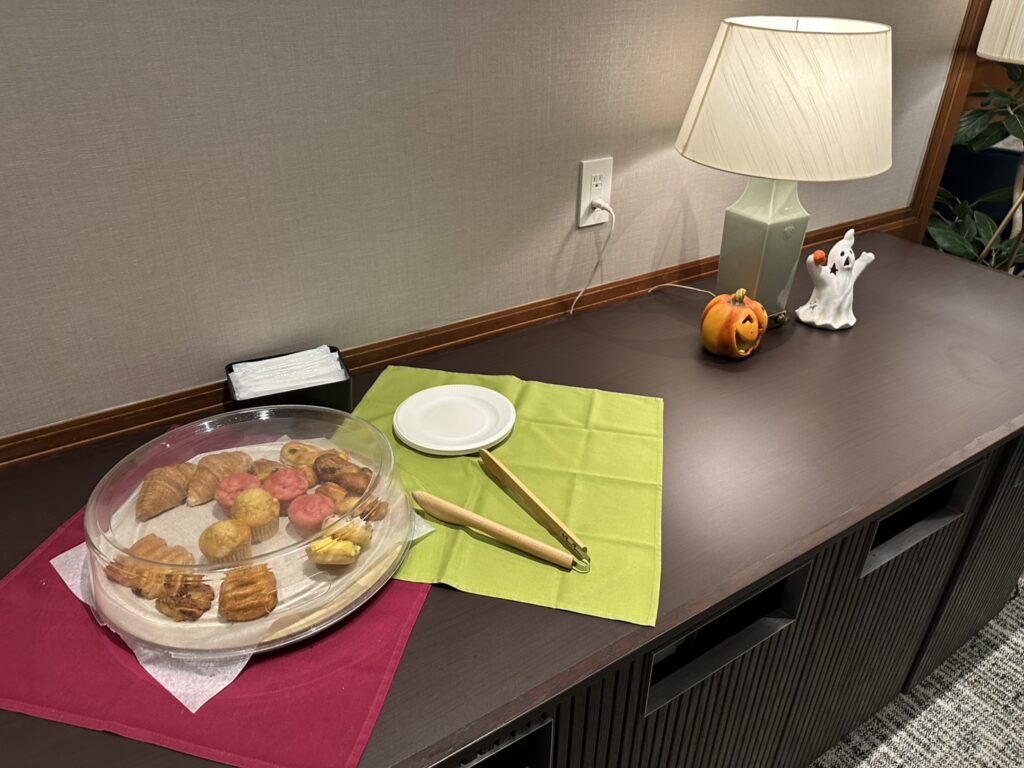 しかし、プラチナエリート会員以上であれば「ワークスペース」というエリアを無料で利用することができます!そこには「パンやドーナツ」「ドリンク機器」が準備されているのでラウンジに相当する施設といえるかもしれません!