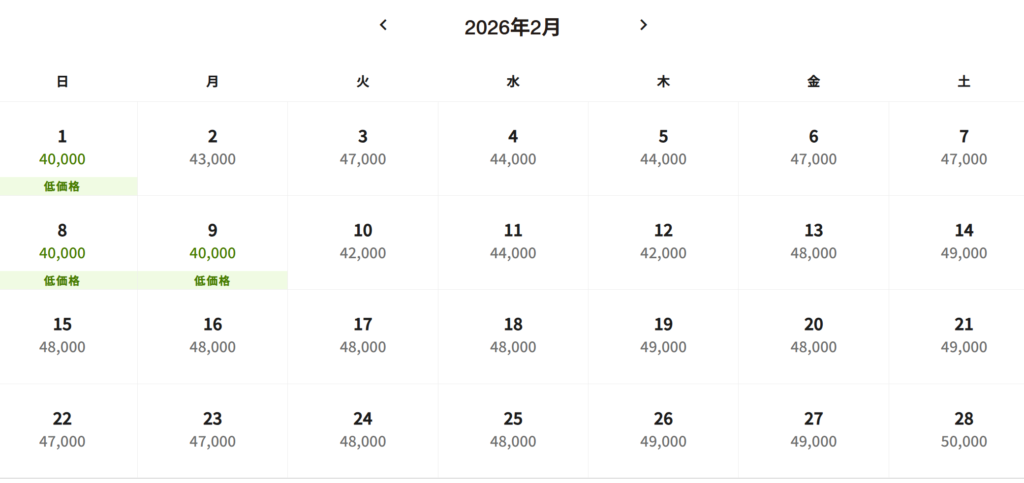 オフピークとピークの差が激しいわね!!是非、上記ボタンにリンクされている公式HPでオフピークへの計画的な旅行をプランしてみてね!
